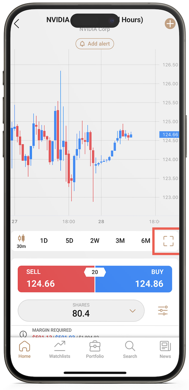 - Докоснете бутона „Разгъване“ в долния десен ъгъл на графиката