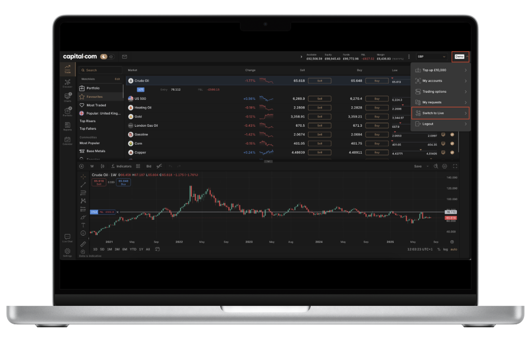 Note: Demo trading uses simulated pricing and execution to help you practise on the platform without risk. Live trading takes place in real market conditions, so order fills and liquidity may differ.