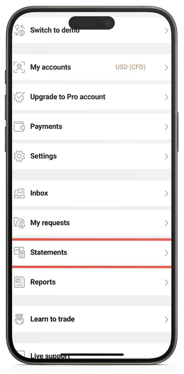 En la app, ve a ‘Cuenta’ > ‘Estados de cuenta’ > ‘Nuevo estado de cuenta’, y selecciona la cuenta y el periodo relevante antes de hacer clic en ‘Generar’.
