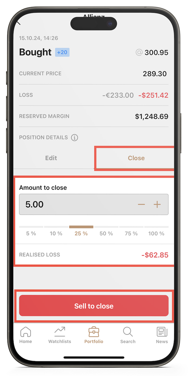 - En Cantidad a cerrar, especifica cuánto deseas cerrar.