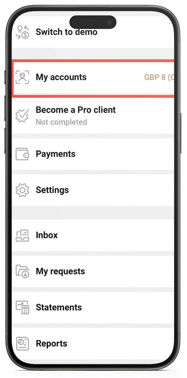liigu jaotisse Konto Minu kontod ning klõpsa MT4 konto kõrval olevatel Sisselogimisandmetel.
