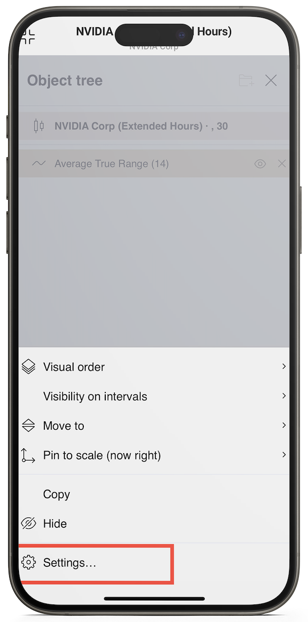 - Puudutage indikaatorit, mida soovite muuta, ja valige seejärel „Seaded”