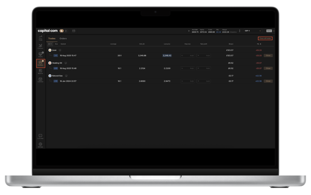 Vous pouvez fermer toutes vos positions ouvertes en quelques étapes seulement. Le processus est légèrement différent selon que vous utilisez l'application ou la plateforme web.