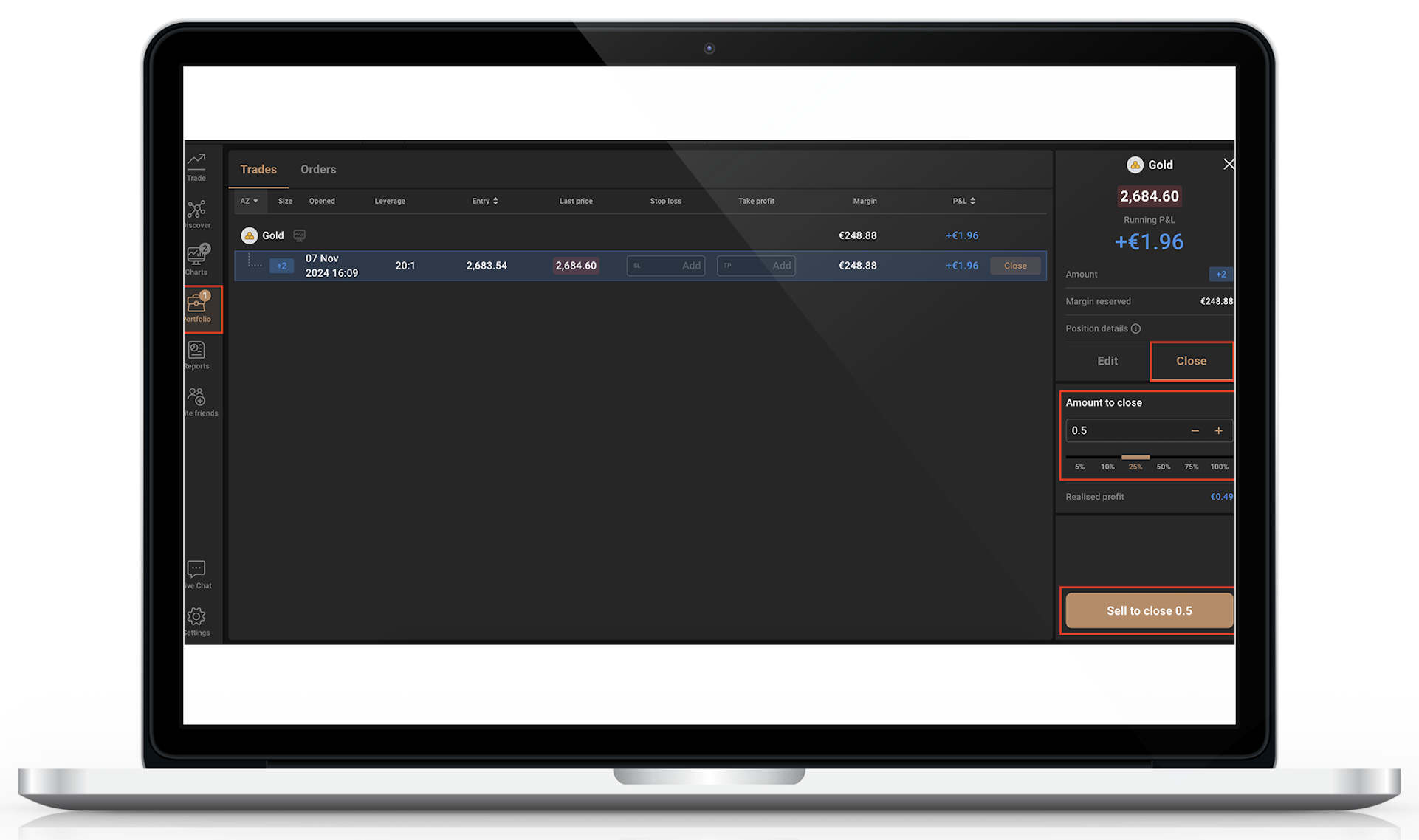 - In Quantità da chiudere, specifica quanto desideri chiudere.