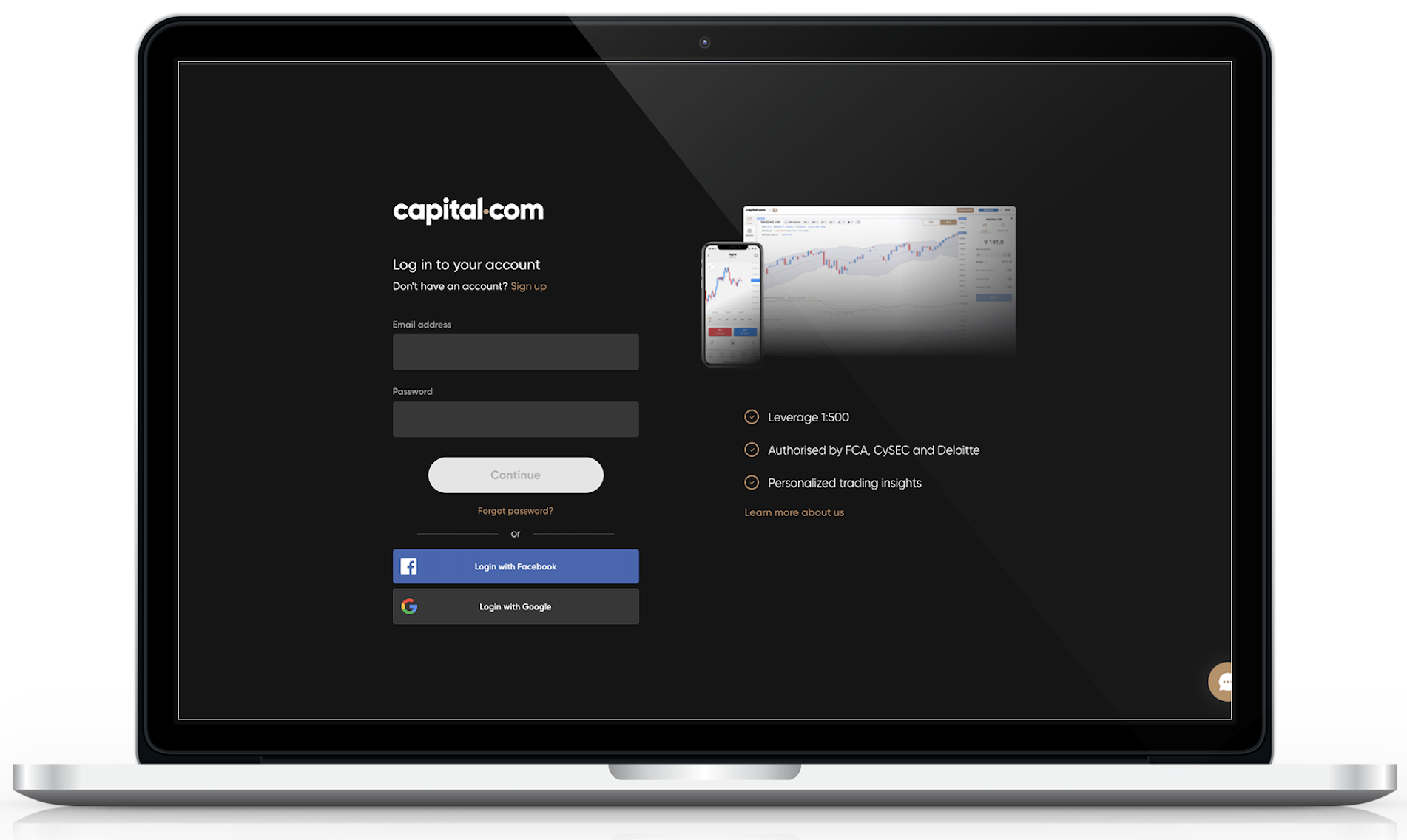 - Se non inserisci le tue credenziali entro due minuti, la pagina di login di Capital.com verrà chiusa dalla funzione di timeout.