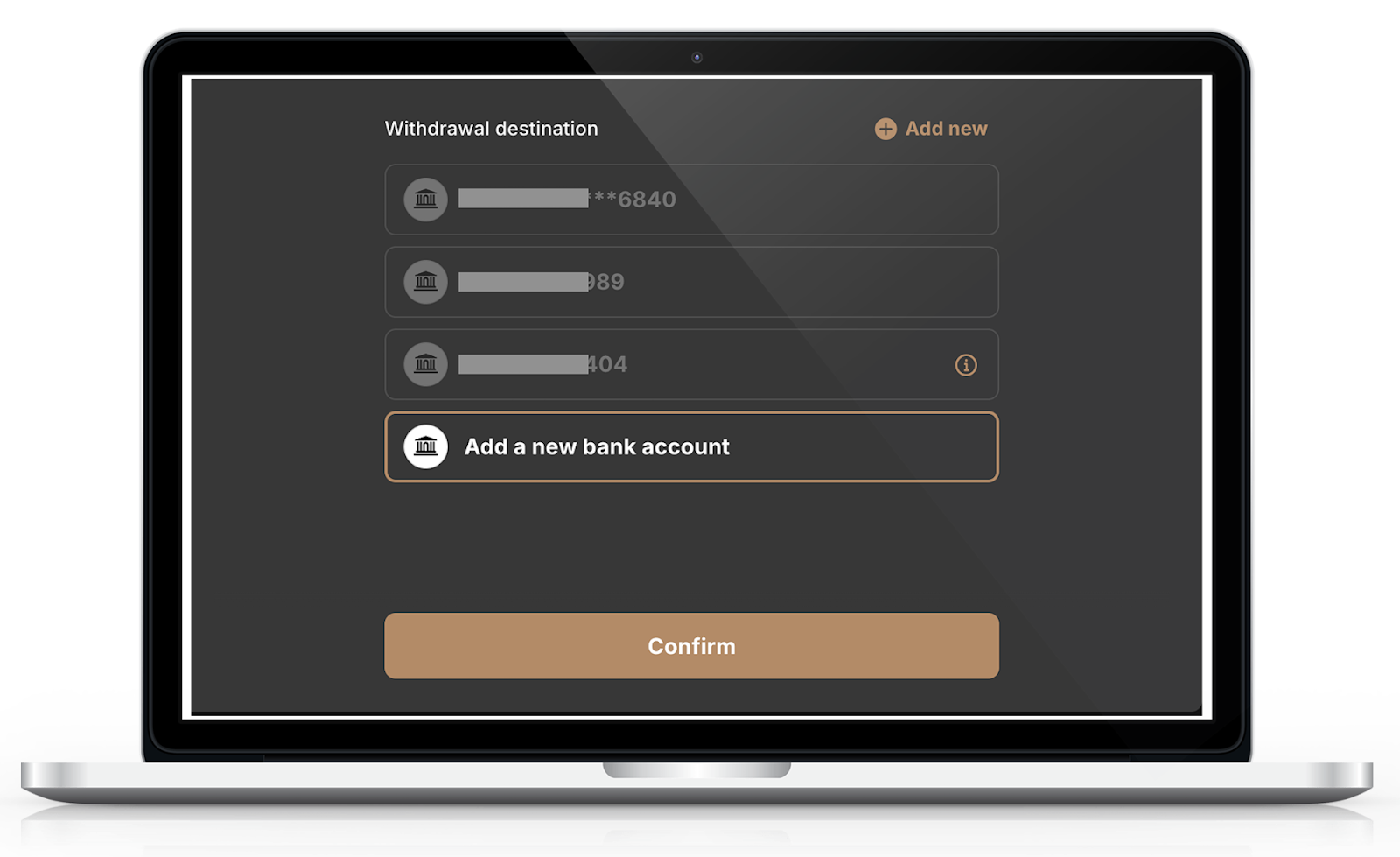 3. Pasirinkite esamą banko sąskaitą arba pridėkite naują.
