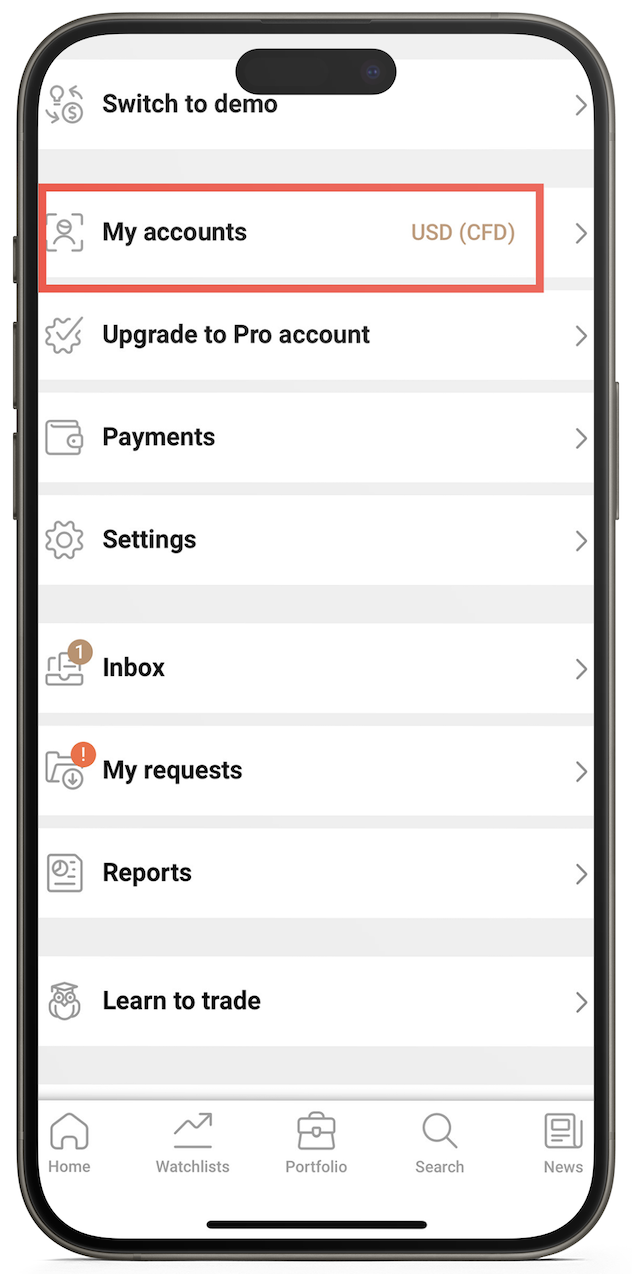 open de Capital.com app, ga naar ‘Mijn accounts’ ‘Trade opties’ en zet het aan/uit zoals je wilt.
