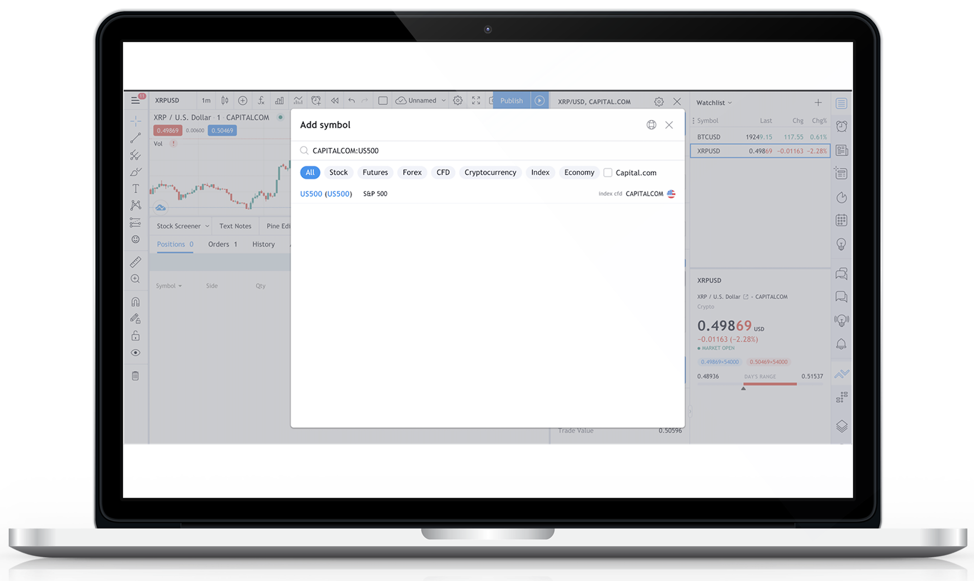 Вот и все. Получите доступ к торговой платформе Capital.com на TradingView и выберите рынок, на котором хотите торговать. Наслаждайтесь сочетанием умного и отмеченного наградами торгового брокера вместе с опытом крупнейшего торгового сообщества TradingView.