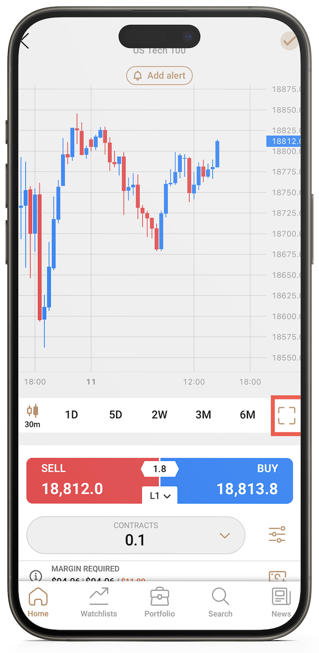 Som standard visar diagrammen 'sälj' priser (bud). För att växla till 'köp' priser (fråga), följ bara dessa steg.