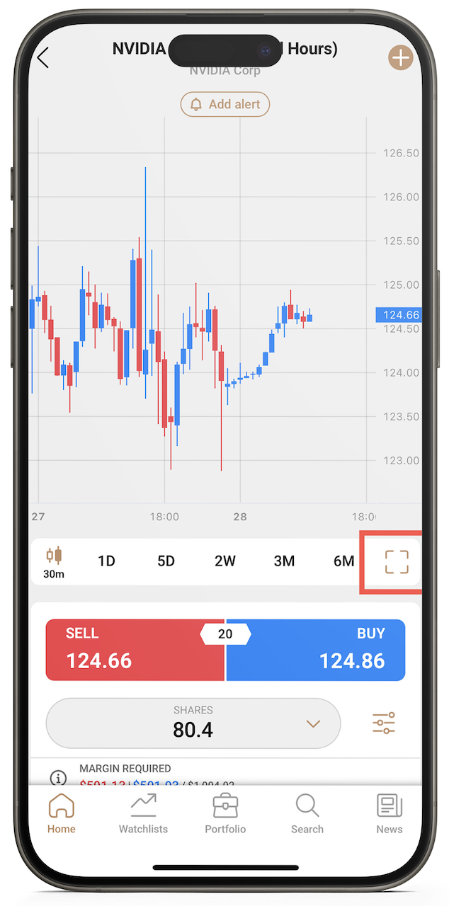 • แตะปุ่ม 'Indicators' ที่ด้านบนตรงกลางของกราฟ