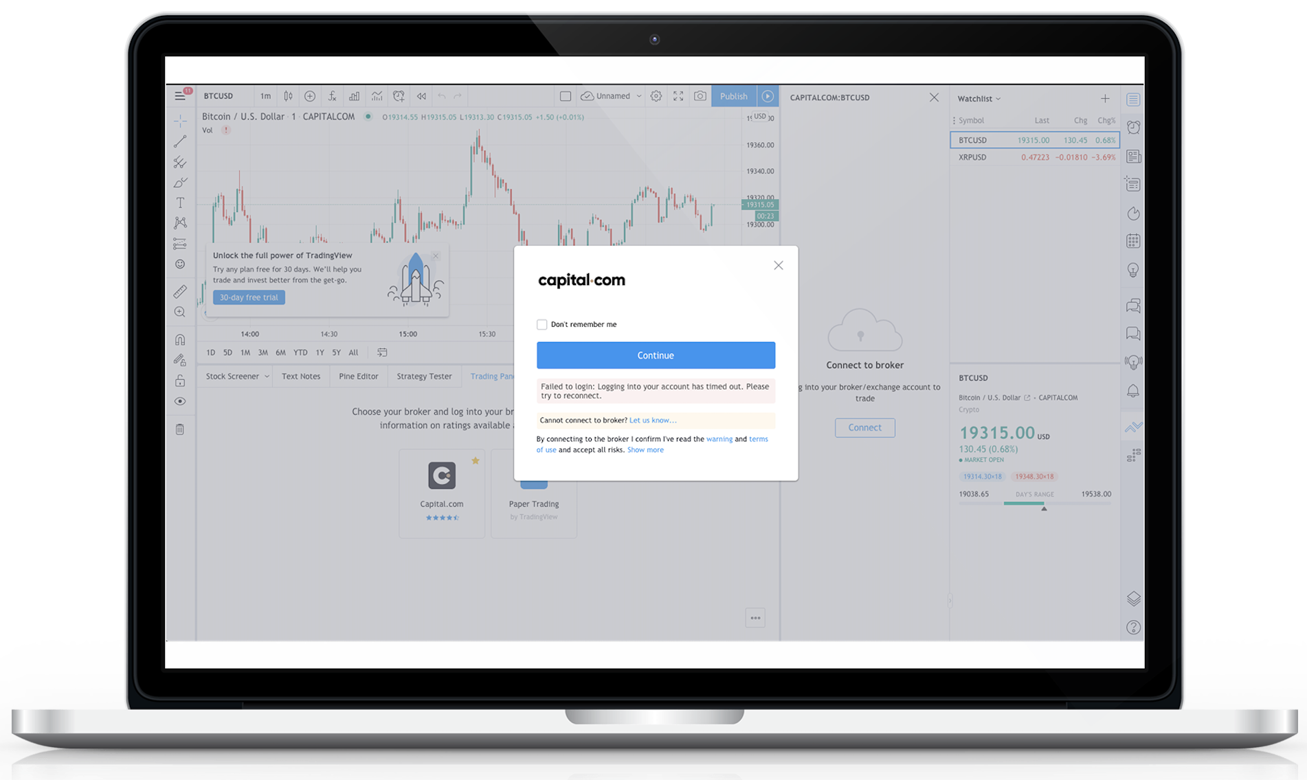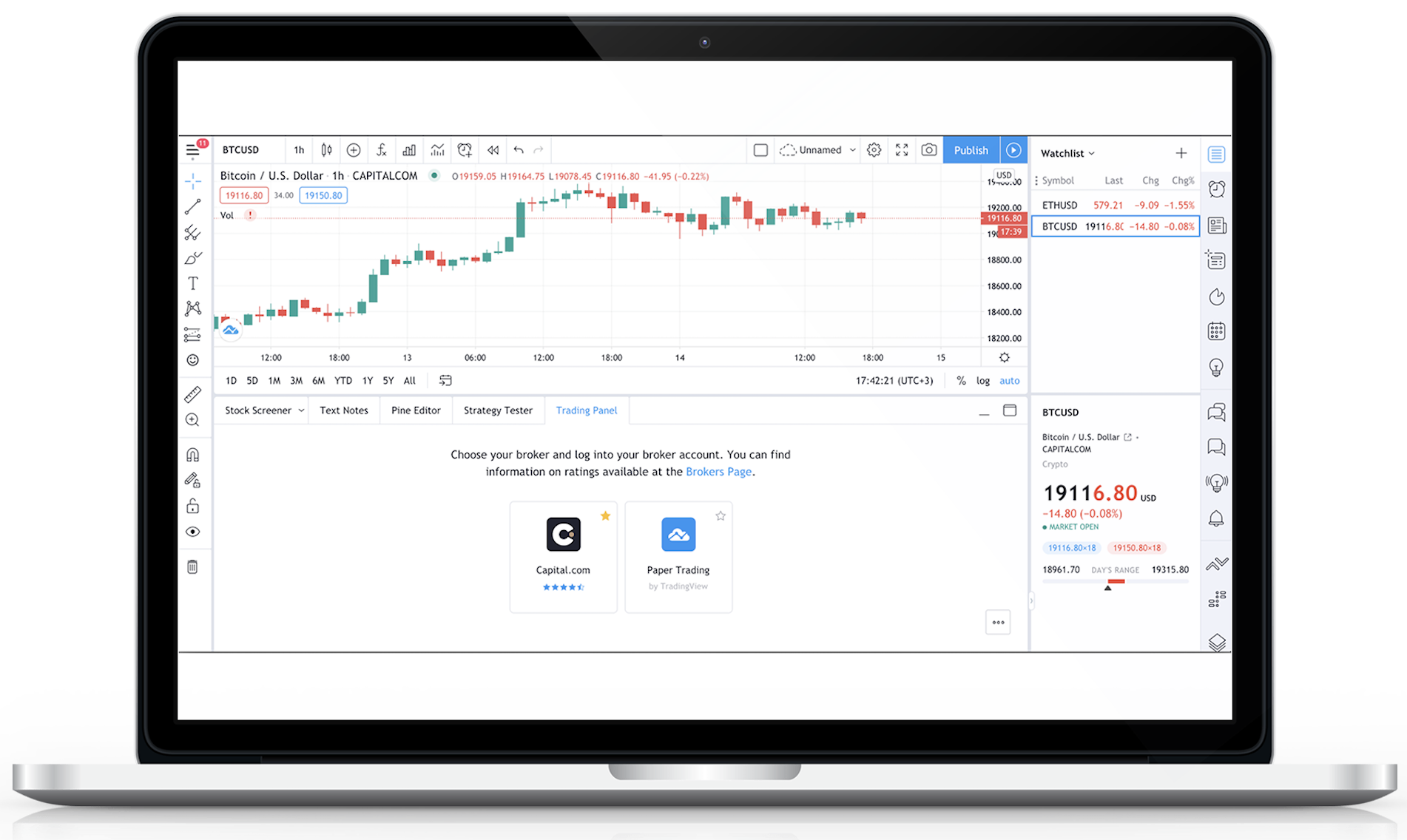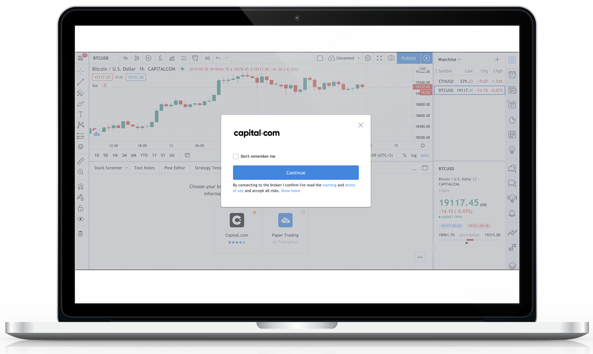 แค่นี้เอง เข้าถึงแพลตฟอร์มการเทรด Capital.com บน TradingView และเลือกตลาดที่คุณต้องการเทรด เพลิดเพลินกับการผสมผสานของโบรกเกอร์เทรดที่ชาญฉลาดและได้รับรางวัลควบคู่กับความเชี่ยวชาญของชุมชนเทรดที่ใหญ่ที่สุดจาก TradingView