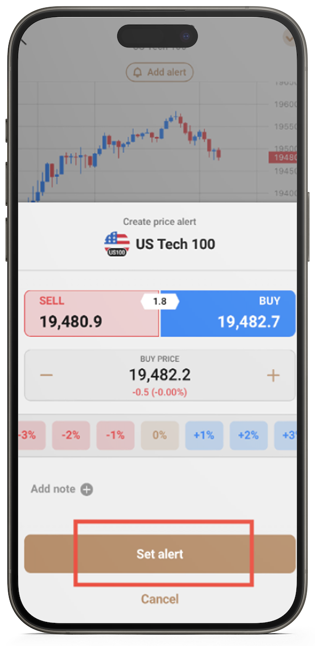 คุณยังสามารถตั้งค่าการแจ้งเตือนราคาได้อย่างรวดเร็วโดยการเลือกการเพิ่มหรือลดราคาตามเปอร์เซ็นต์