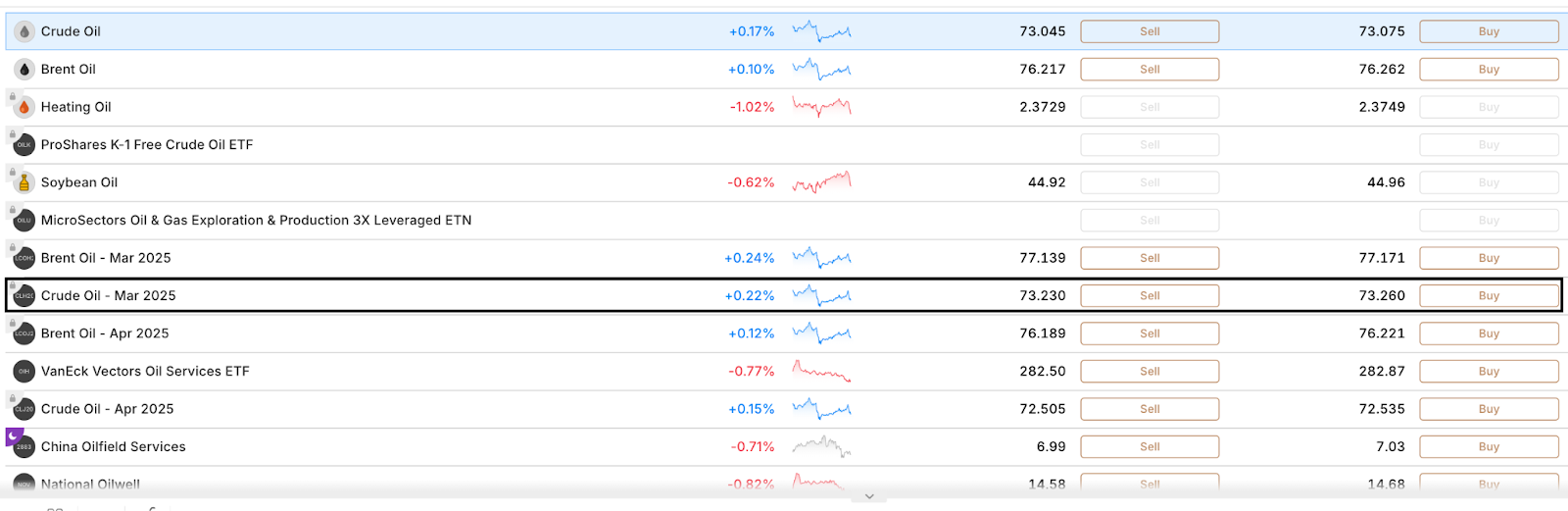 然而,期货也可以以差价合约(CFD)的形式作为衍生品进行交易(见下文),这就是您使用我们平台交易期货的方式。下面,您将看到通过市场搜索得到的三月份到期的原油期货差价合约示例。