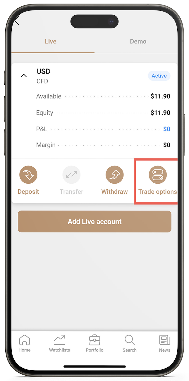 打开 Capital.com 应用,进入“我的账户” “交易选项”,根据您的喜好开启或关闭。